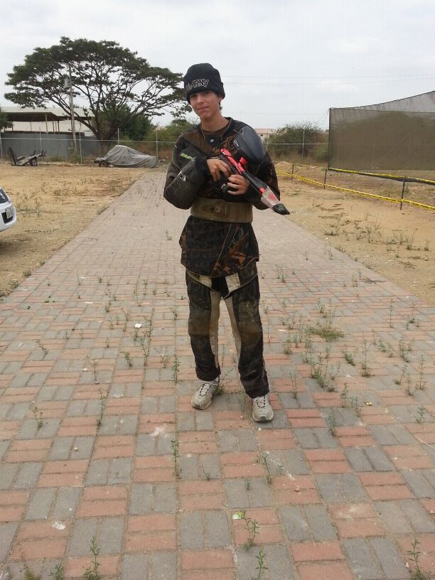 Yo me entusiasmé con este deporte porque me gusta el combate y la adrenalina que fluye dentro de mi cuando estoy en acción, una vez que ingreso a la cancha solo me concentro en lo que voy a hacer y más que nada lo que el enemigo va a hacer. Lo que más me gusta de este deporte es el compañerismo y las amistades que uno encuentra aquí. Para mí, mi equipo es mi familia, donde todos nos ayudamos unos a otros, yo empecé este deporte hace 4 años, todo empezó un día que mis amigos habían planeado ir a jugar un fin de semana, al comienzo no sabía si dolía , tampoco las reglas ni nada, lo único que sabía era disparar. La primera vez que me pegaron un tiro lo sentí en todo mi brazo, me dolió tanto que se me cayo la marcadora y se me salieron las lagrimas pero todo esto fue momentáneo , luego seguí jugando. Me empezó a gustar tanto este deporte que ahora hasta mi Papá juega conmigo y terminamos comprando nuestra primera pistola y luego fuimos adquiriendo más implementos.